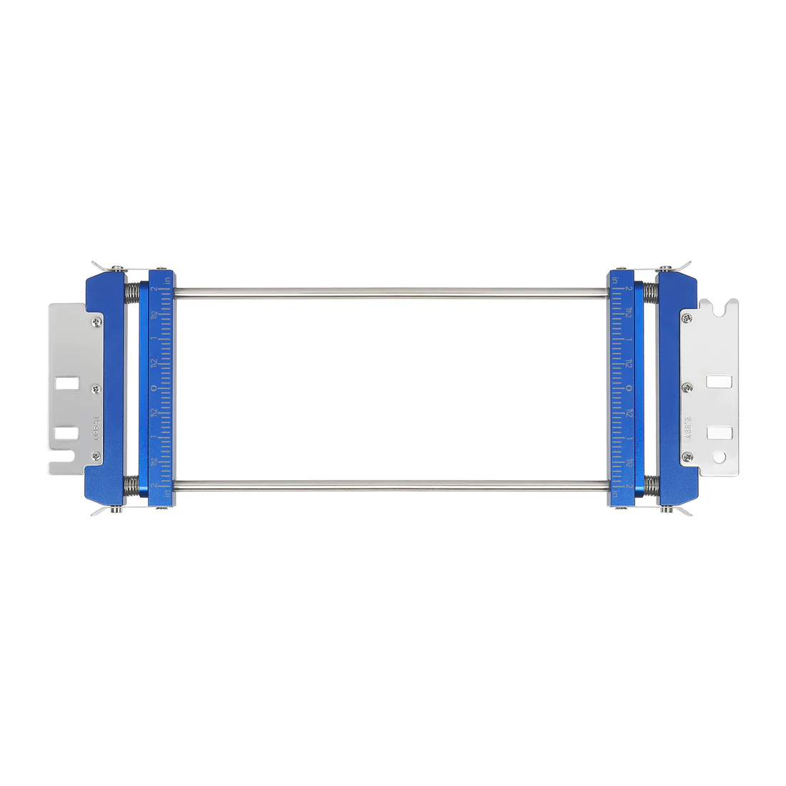 Diseñado específicamente para cinturones, fajas, collares para perros, cordones y correas para cámaras y bolsos. Las reglas dobles y las marcas de centro le ayudan a alinear texto y logotipos en segundos, ideal para cintas de nombre y tiradas de producción. Funciona a la perfección con las máquinas de bordado Tajima.