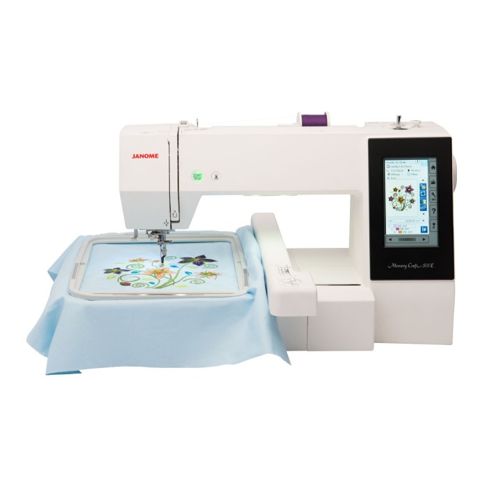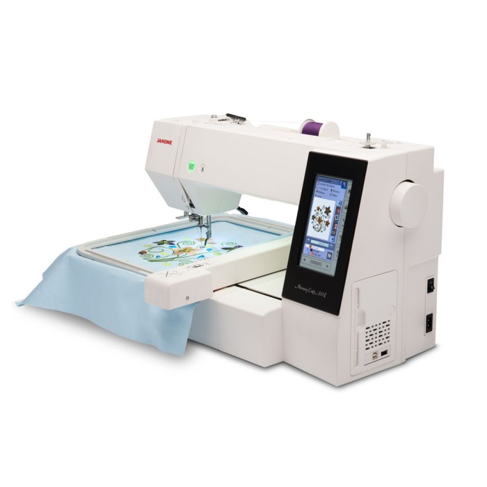 La Janome MC500 LE es una máquina de bordar doméstica de alta gama diseñada para entusiastas de la costura. Con su pantalla táctil LCD a color, podrás navegar fácilmente por los 160 diseños de bordado incorporados, editarlos y además crear tus propios diseños personalizados con el software de regalo.