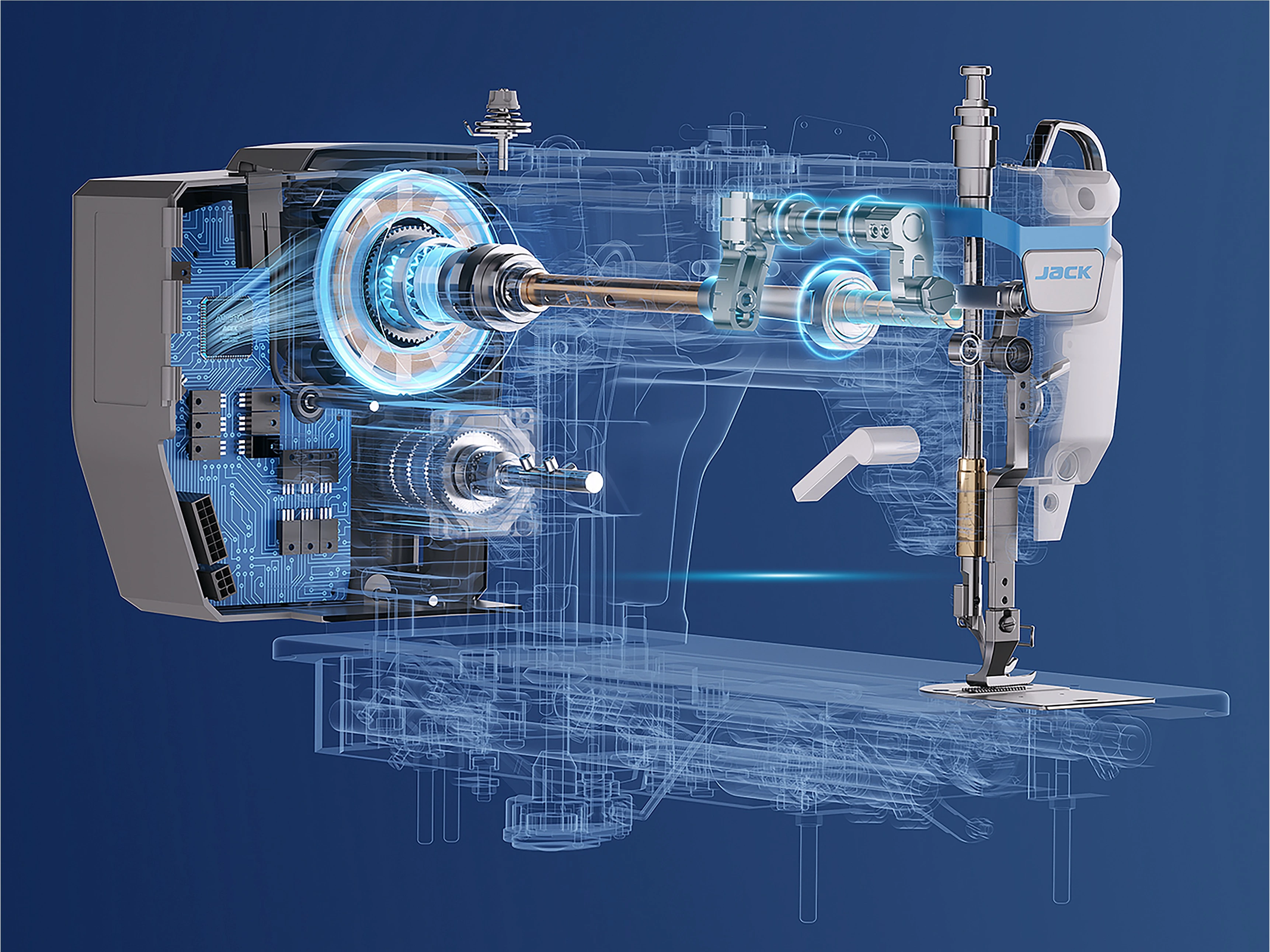 Motor Direct Drive Integrado: Un motor servo eficiente y de bajo consumo integrado en el cabezal. Proporciona una respuesta de aceleración y frenado superior, manteniendo un rendimiento potente y muy silencioso en comparación con los motores de embrague.
