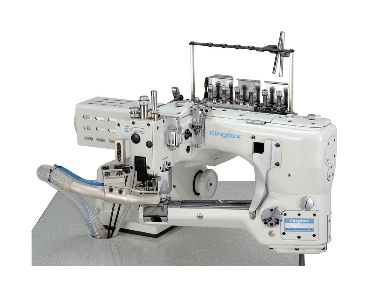 Maquina Flatlock de Kingtex NTD-6712-M6/TT-36PH7. Tambien conocida como recubridora de costura plana. Es una pmáquina diseñada para un propósito muy específico: unir dos piezas de tela sin que haya relieve en la costura