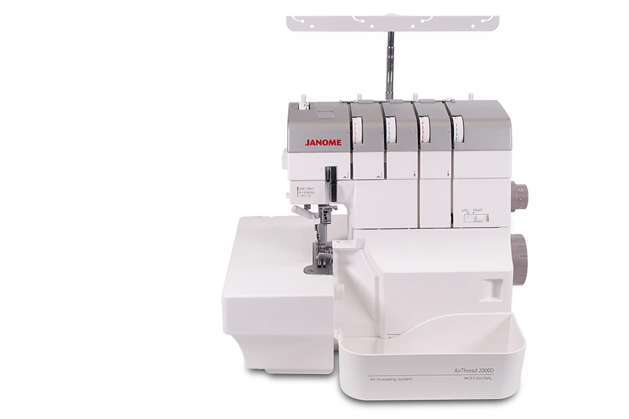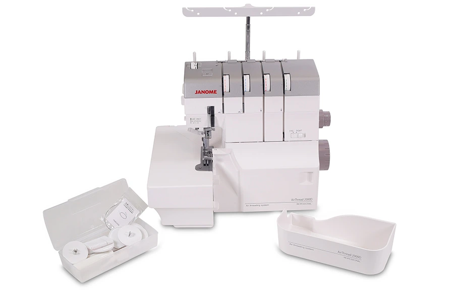 La Janome AirThread 2000D es una remalladora que transforma la parte más frustrante de la costura, el enhebrado, en una tarea de segundos.Esta máquina incorpora el sistema neumático (por aire) de enhebrado automático, una característica de alta gama que elimina la necesidad de seguir rutas complejas con pinzas.