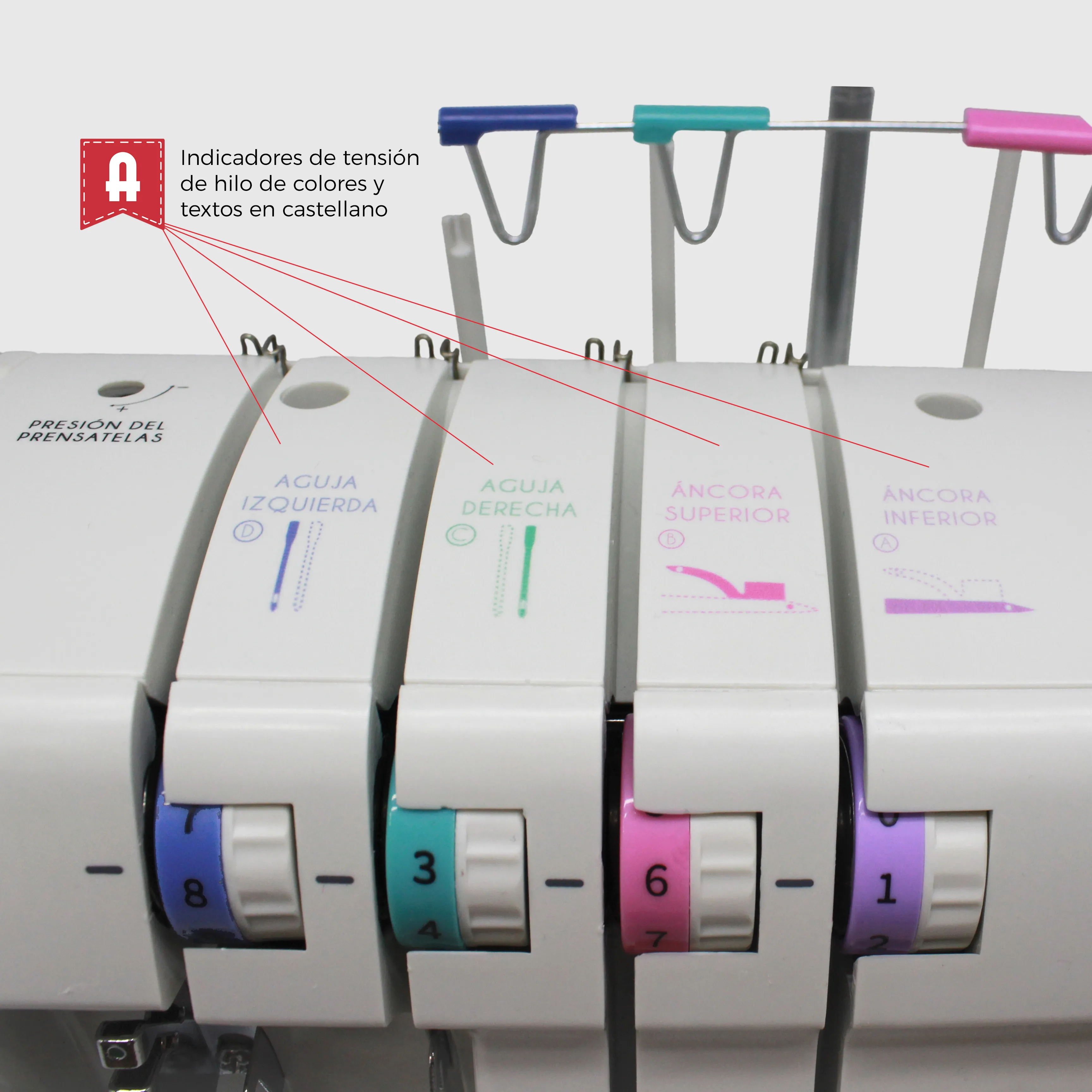 • Ancho de sobrehilado regulable de 3,5 a 7 mm