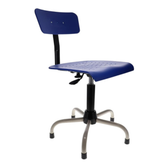 Asiento regulable mediante pistón neumático. El respaldo es regulable en altura e inclinación. La base tiene 5 patas . Los asientos y respaldos están fabricados en polipropileno antideslizante.